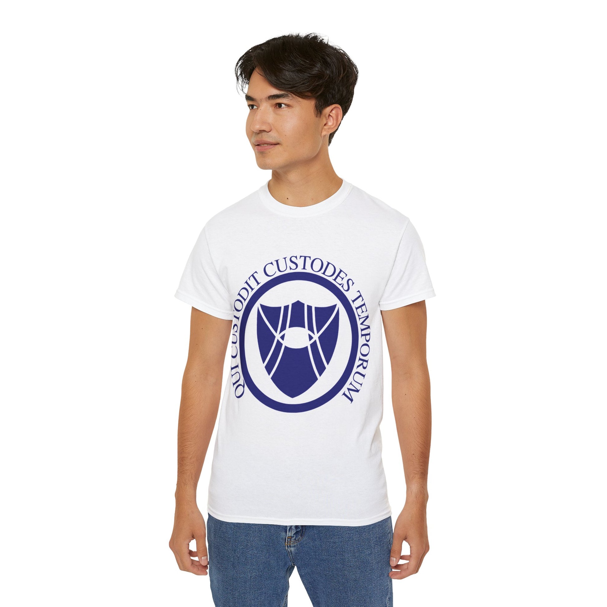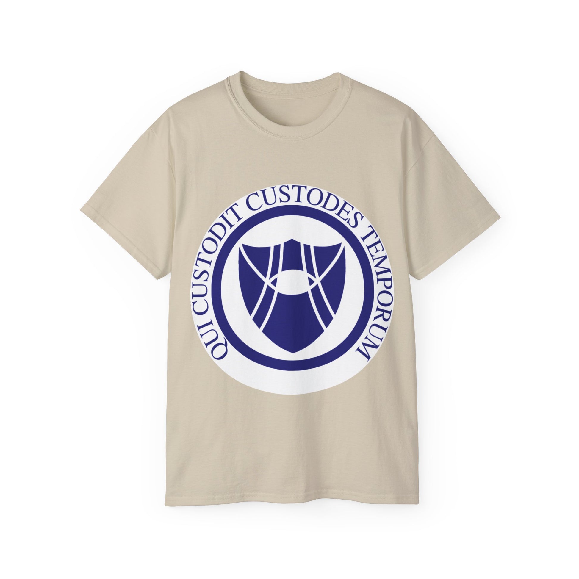 A soft, substantial cotton tee stamped with the ministry of timelines insignia. The graphic’s deep indigo print sits centered on a natural white canvas, giving the shirt an archival, slightly scholarly look. Wear it on mountain roads, at late-night study sessions, or while wandering old towns. The heavier vintage-weight fabric and tubular knit lend a lived-in silhouette that layers well under jackets or stands alone as a statement. It’s the kind of shirt that ages into character and keeps its shape, so the emblem stays proud through washes and seas